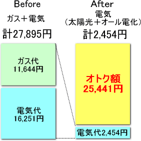 | 一般的な6人家族のA様の場合、なんと25,441円/月(305,297円/年)もオトクになりました。 |